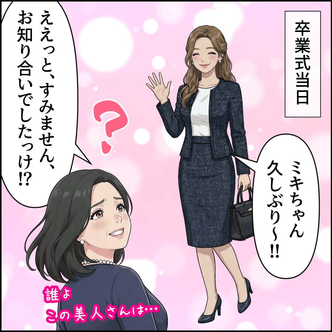 美人ママに大変身した友人が、